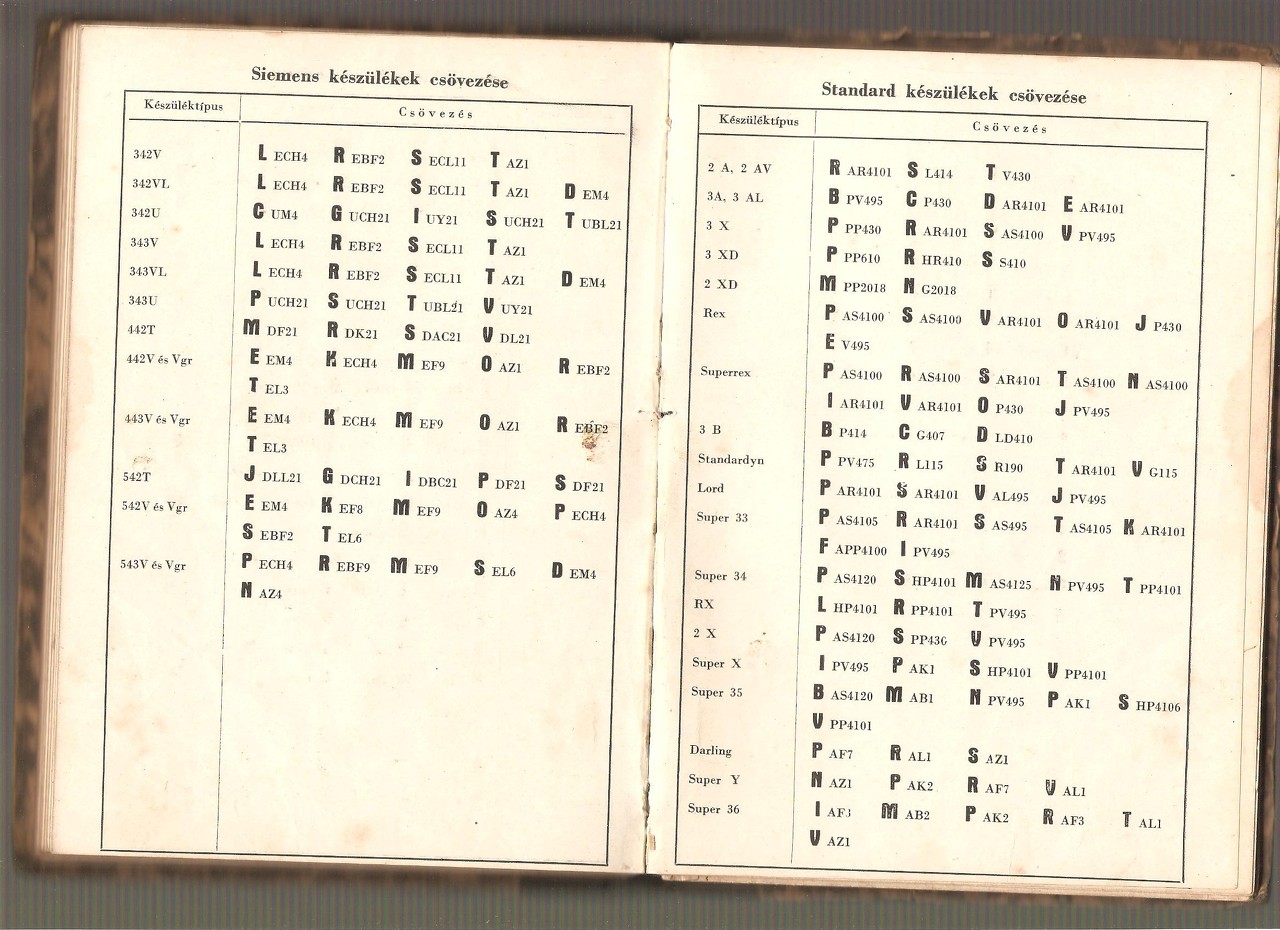 Szert tettem egy régi rádiós könyvre, amiben a 40'-es évekig hazánkban gyártott rádió vevők csövezése megtalálható táblázatos formában.