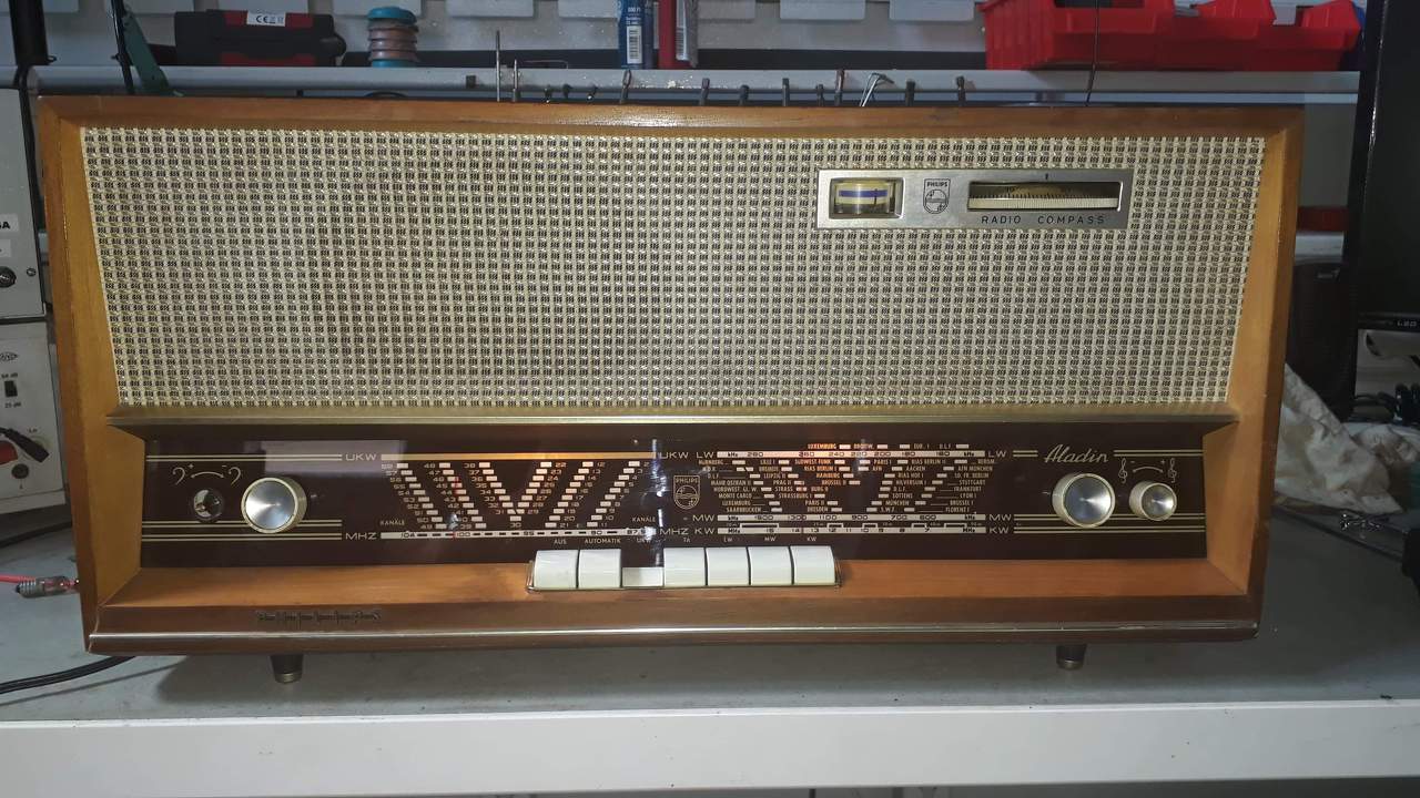 Gondoltam megosztom a hétvégi piacozás eredményét. Telefunken 664GWK, korához képest nagyon szép allapotban van. A másik egy Philips Aladin tipusú rádió, Őt már rendbetettem, hozzáteszem, hogy nagyon szép hangja van!