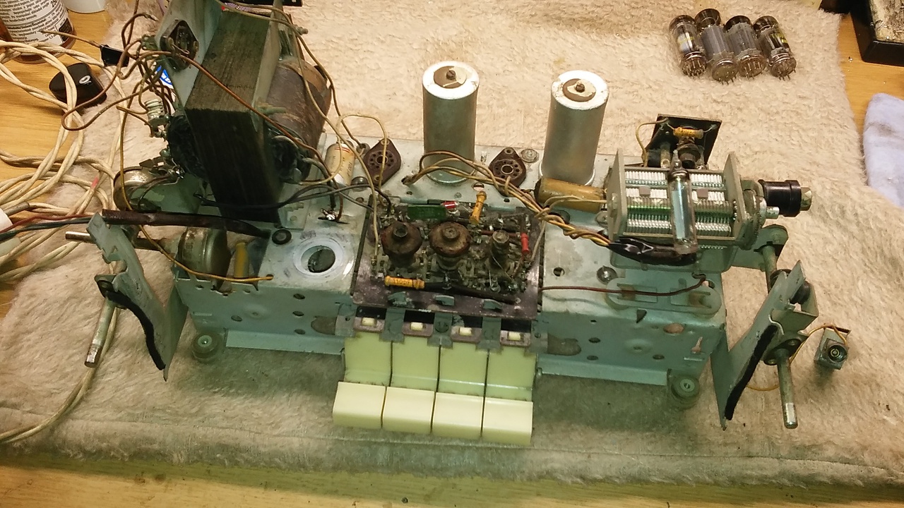 Köszönöm szépen a tájékoztatást, tudtam, hogy ha más nem is, de te biztosan többet tudsz róla! A készülék tegnap érkezett, láttuk, hogy nem eredeti a hangszóró, de van egy520-as donor,majd ki lesz cserélve. Láttuk már másik képen a lefogató gumit, vagy gurtnit, de ebből ki van véve, de a helye látszik is a polc közepén, mert bele építettek egy tápegységet, ami működik is, csak ki lett véve. A külsejét restaurálni kell. Köszi Janó bácsi!