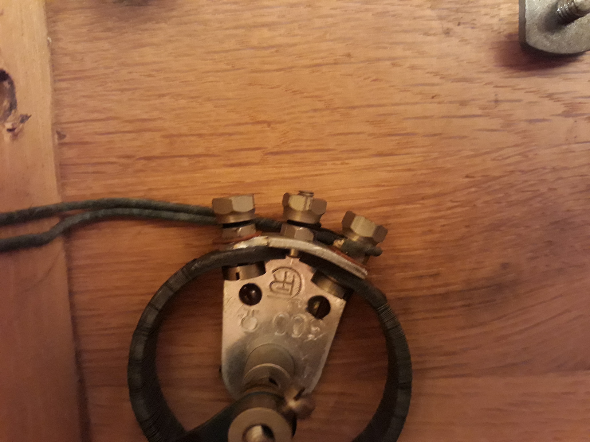 Köszönöm! 500 Ohmos. Szép selyemfonatú vezetéke van, és úgy beleszegecselte valaki a fába, hogy nem is szedem ki, csak magát a műszert.