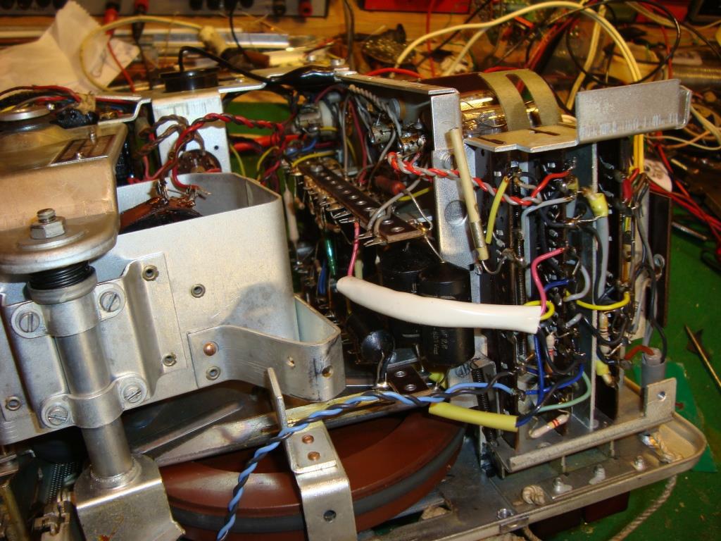 Folyt: Tartozom egy szigorúan bizalmas vallomással. Ifjú műszerész korom óta szívből utálok mindent, amit Philips-nek hívnak. Ebbéli meggyőződésemben ez a magnó, még csak ráerősített. Az egy nagyon enyhe meghatározás, hogy nem kifejezetten szervizbarát. Természetesen szét kellett szedni a mechanikát, mert minden mozgó alkatrész, tengely, csapágy be volt sülve. Ki kellett mosni újra zsírozni. De semmit nem lehet úgy szétszedni, hogy ne kellene legalább a készülék felét szétbontani. Minden, minden fölé van építve, ráadásul egy része nem csavarozva, hanem szegecselve van, mint ha örök időkre rakták volna össze. Például a szinte leg gyakrabban romló alkatrészt, a pot métert is csak úgy tudtam kivenni, hogy mögüle a fél elektronikát kiszedtem kiforrasztottam meg lefúrtam a szegecselt részeket, De ugyan ez volt az elkóval is, azt is örök időkre szánták beszegecselni. Mindegy, már készen van, rá ment majd egy hét, most már szépen működik. A többi a képeken.