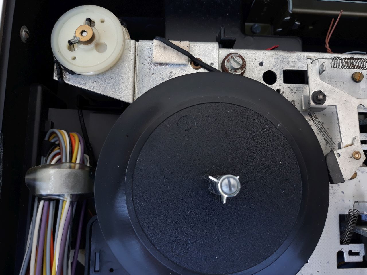 Szétdobtam a lemezjátszót,lesz meló a dobozzal is,maga a szerkezet legneccesebb a része a tányért meghajtó gyürük,amit majd ki kell találni,hogy oldom meg,mert a gumi az elporladt.