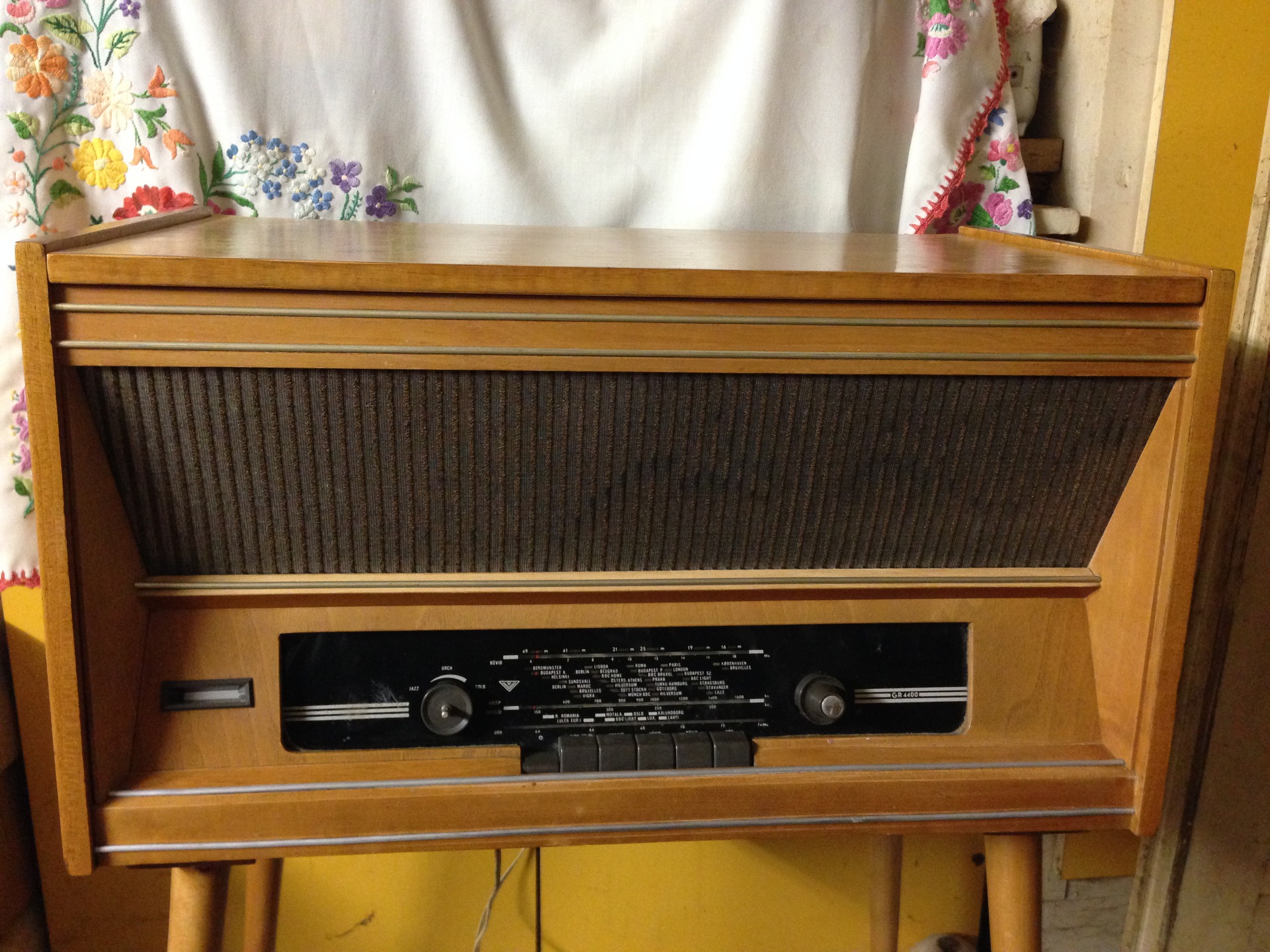 A lemezjátszóba egy tüt tettem,müködik a pickup. A rádió dobozát,lábait átcsiszoltam smirglivel mert borzasztó koszos volt,kétszer átkentem csónaklakkal. Az elejét nem bántottam,csak a fémet poliroztam meg.A hangszóróselyem is szép. Sajnos azok a képek elvesztek amik a fellelt állapotát mutatják,hát azt eltudjátok képzelni milyen retkes volt,a lemezjátszó szó szerint fekete volt a kosztól. Az a baj,hogy kevés idöm van restaurálgatni. A hozzászólás módosítva: Dec 20, 2018