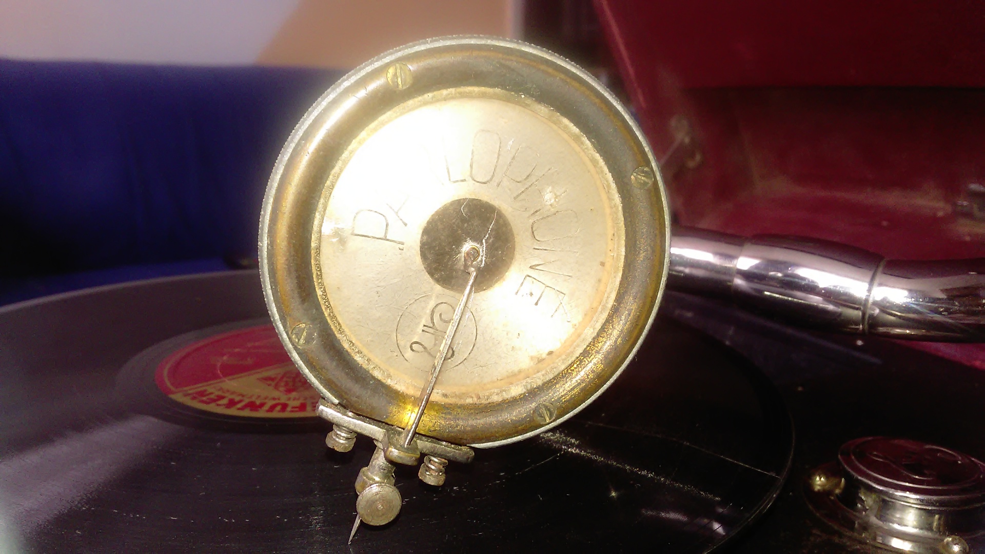 Azt hiszem, itt a tölcsér maga a fadoboz. a hangszedő kar azért olyan vastag, üreges, az is a tölcsér része. Érdekes megoldások mindig voltak a technikában.
