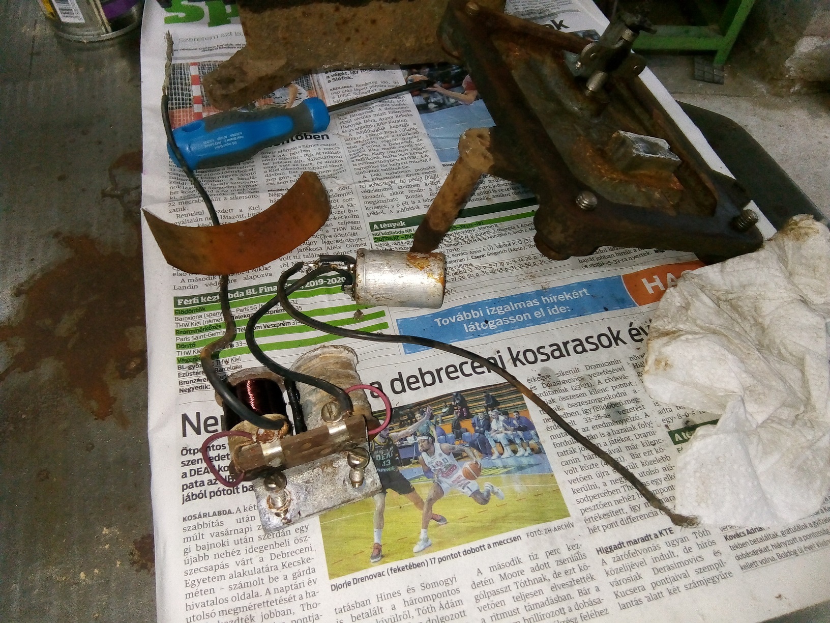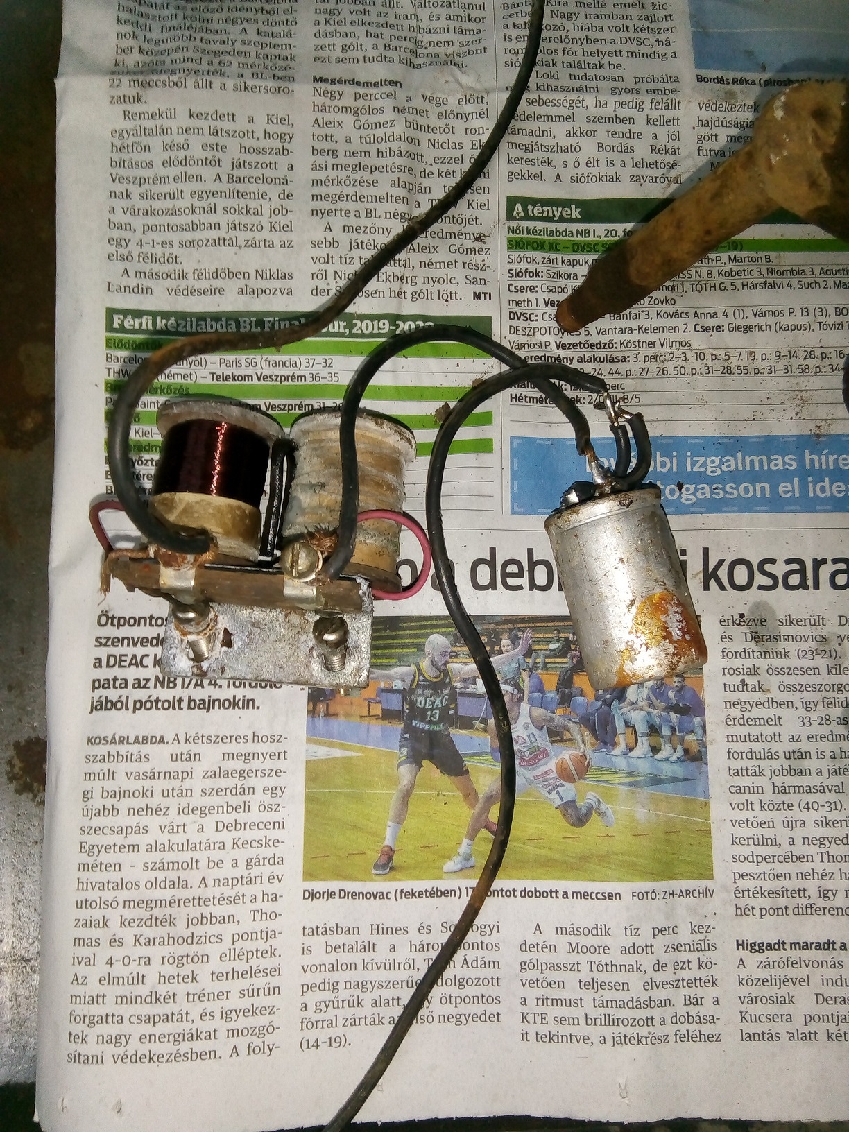 Szét lett kapva, mechanikája (a bronz harangokat verő nyelv már újra mozog), az a beforasztott kondi nem teszik nekem, se sorosan se párhuzamosan nincs kötve, mintha valaki mókolta volna.