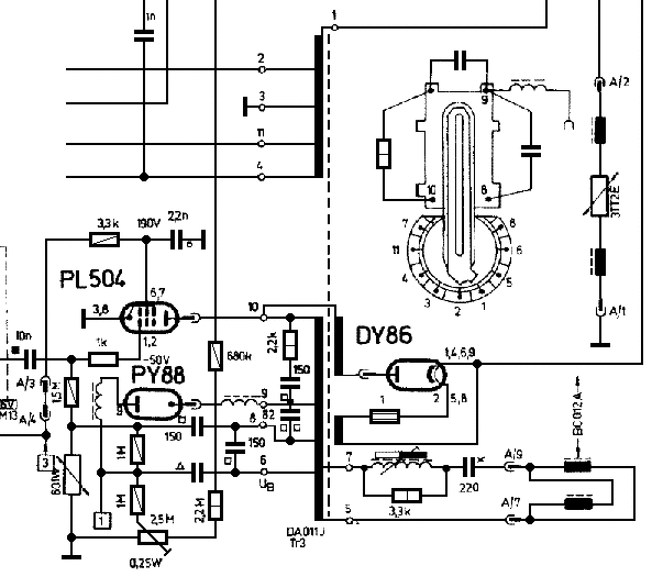 A rajzon nincs feltüntetve a nagyfesz tekercs: úgy néz ki, mintha a PL500 anódra menne a