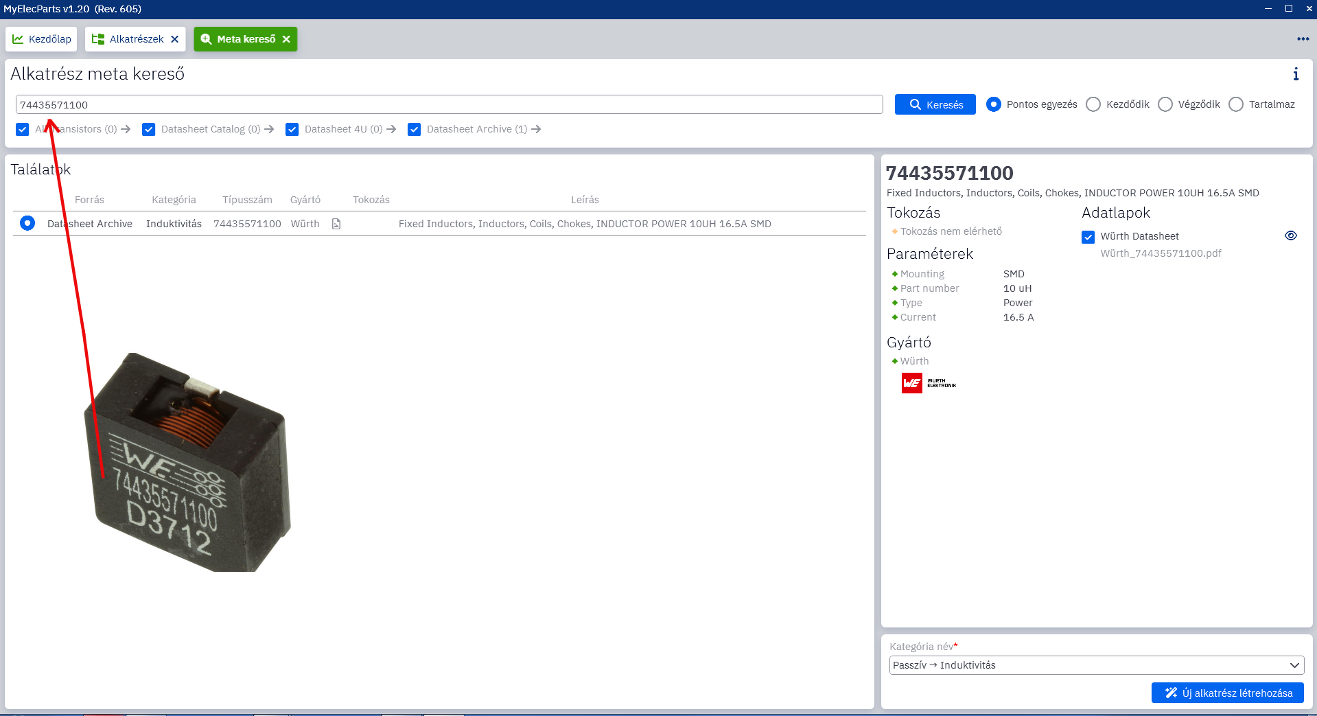 De benne van, a kezdőoldalon a "Alkatrész meta kereső"-t válaszd. Alkatrészeket ezzel érdemes felvenni.