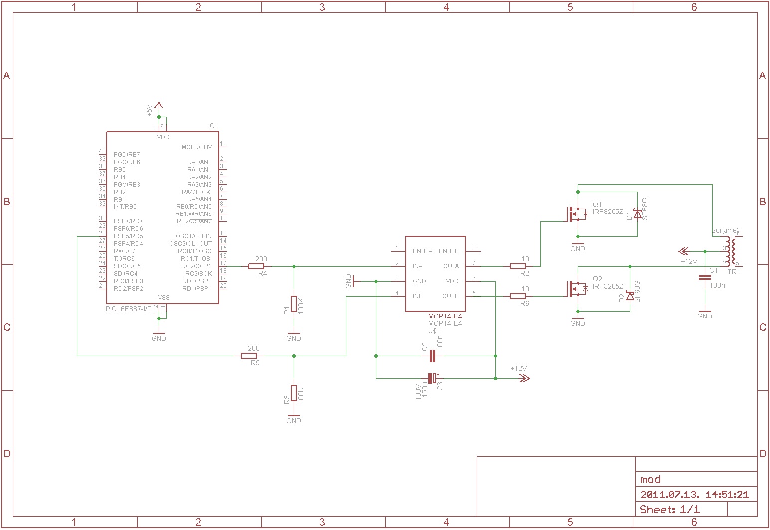Bocs légrésest akartam írni. Azért ilyen vezérlésből indultam ki mert a későbbiekben ha inden frankón működik már akkor egy modulált PWM jellel akarom majd meghajtani a sorkimenőt tehát plazmahangszórót is akarok majd belőle csinálni és ezt a kapcsolást szeretném még felhasználni nagyfeszültségű vízbontásos kísérleteimhez és a ZVS meg önrezgő ott csak az alkatrészek (rezonáns kondi és a tekercs induktivitásának változtatásával tudnám állítani a frekit ahhoz meg szét kéne bombázni a kapcsolást mindig amit nagyon nem szeretnék.De nem hinnám hogy olyan bonyolult lenne amit feltettem csak egy pic ami pwm jelet előállít olyat amilyet akarok egy 2db fetmeghajtó és még pár alkatrész. Csak pl fet védelmére kéne még valami nem tudom mi.