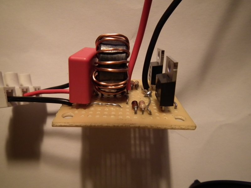 A rajtalévő egyedi sorkimenő szekundere 0.5 huzalból kb.100-120 menet, és 4-6 száz V/0.5-1A (táp és bemeneti áramtól függően). A képen látható, egy 20W-s izzó meg se kottyan neki. Sikerült ötvöznöm a hatékonyságot, és hordozhatóságot. Remekül használható Neoncső inverternek is.