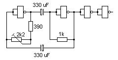 Ez a kapcsolás pl. egy régi orosz, 7400-nak megfelelő IC-vel megy, 1...x Hz. Be kell játszani.