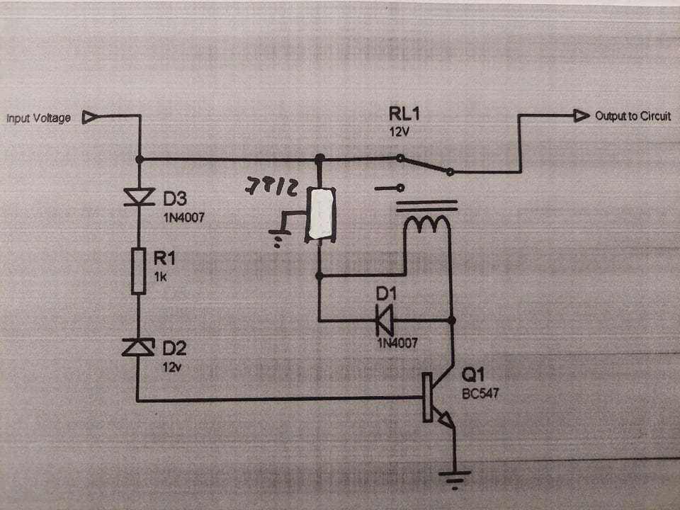 Egy netről összeszedett kapcsolás csak kiegészítettem a 7812-es feszültség stabilizátorral, hogy a relé ne égjen ki. A zenner diódának 15V-os van berakva a 12V-os helyett.
