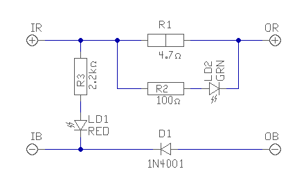 Az 1N4007 helyett valami combosabb, 3..6A diódát tegyél bele. Az ellenállások értéke nem látszik, de remélhezően megfelelő.