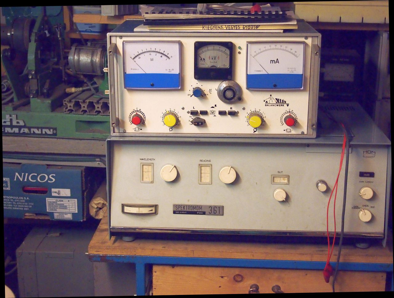 Itt a teljes kép, több információ engem is érdekelne! Régi MOM-osok sem tudnak róla, különböző labor mérési eljárásokból kiindulva ami biztos: a gép lelke egy monokromátor, ami egy erős izzólámpa fényéből válogatja ki a kívánt hullámhosszú fényt, amely áthaladva a vizsgált oldattal töltött küvettán, egy fotocellás mérőmű megállapítja az áthaladt fény erősségét. Az etalon küvettával pontonként összehasonlíva a vegyi összetétel mérhető, így röviden.