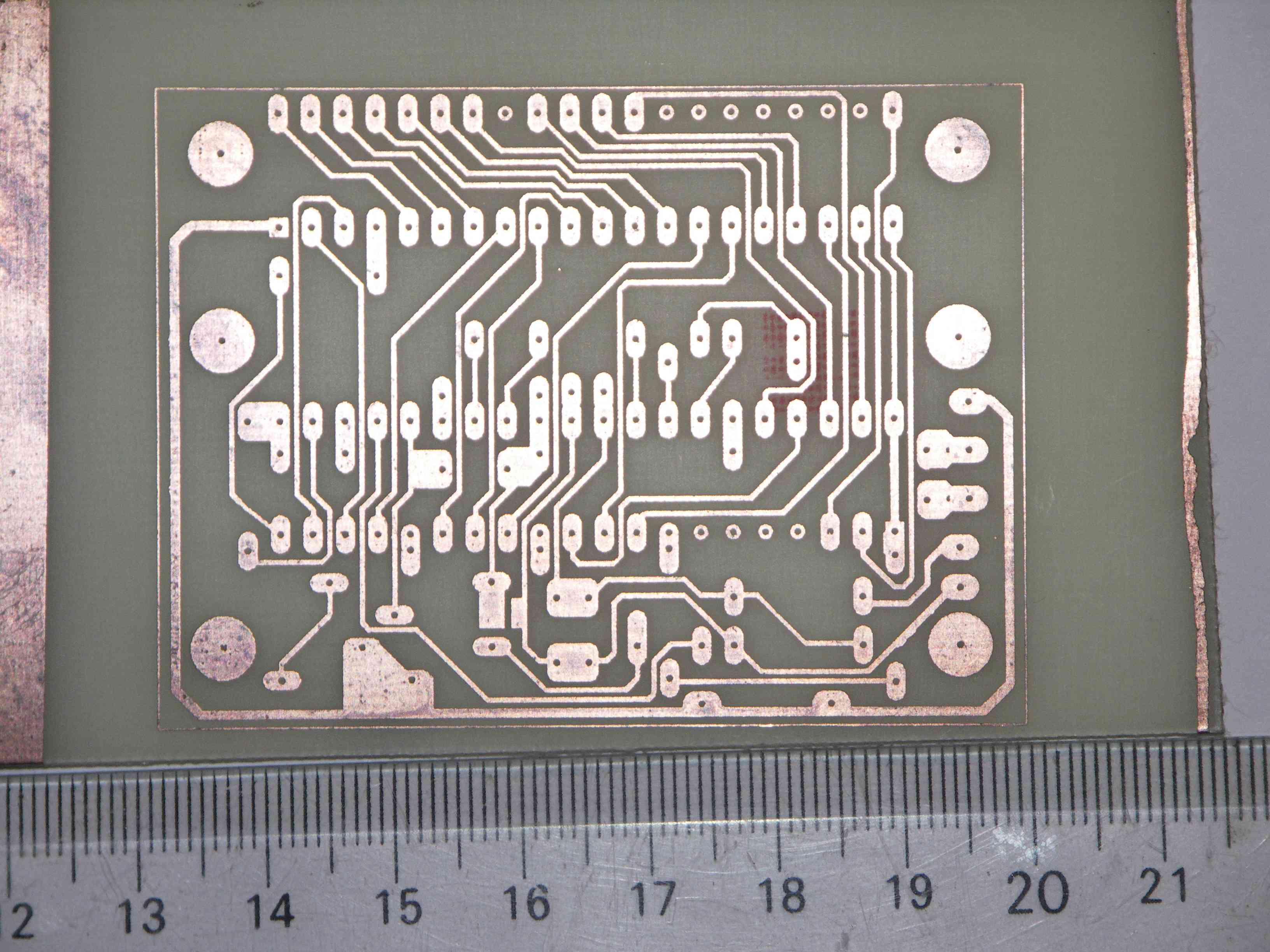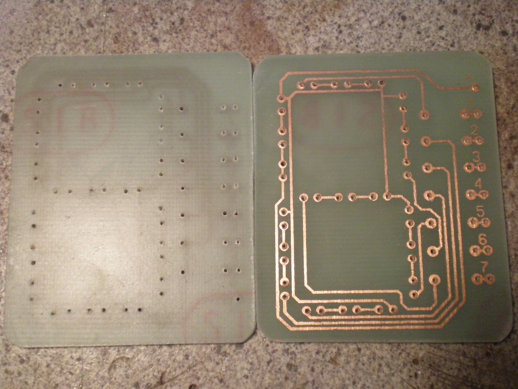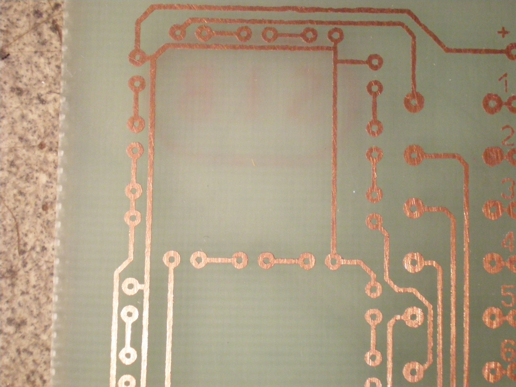 Én amúgy nem szoktam kimaratni a furatközepeket, vasalás után finoman bepontozom, és lakkfilccel rápöttyözök. Így maratás és fúrás után biztos, hogy csak a furatnál hiányzik a rézfólia.