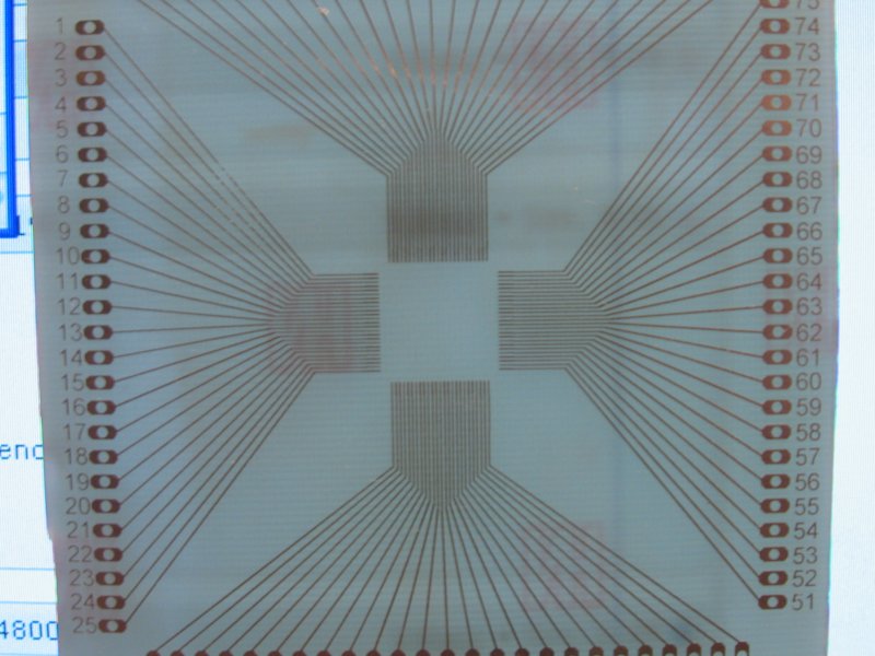 Belül az ic lábainál a méret 12mm, és oldalanként 25 láb. (PIC 24FJ128GA010) A másik kép ugyan ezekkel a méretekkel de csak oldalanként 20 láb. Lehet számolgatni. Most jön majd a forrasztásgátló festék, de már csak ma éjjel, merthogy 2 óra van (vagy 1?) vagy 3-kor lesz 2, fene ebbe az átállásba.