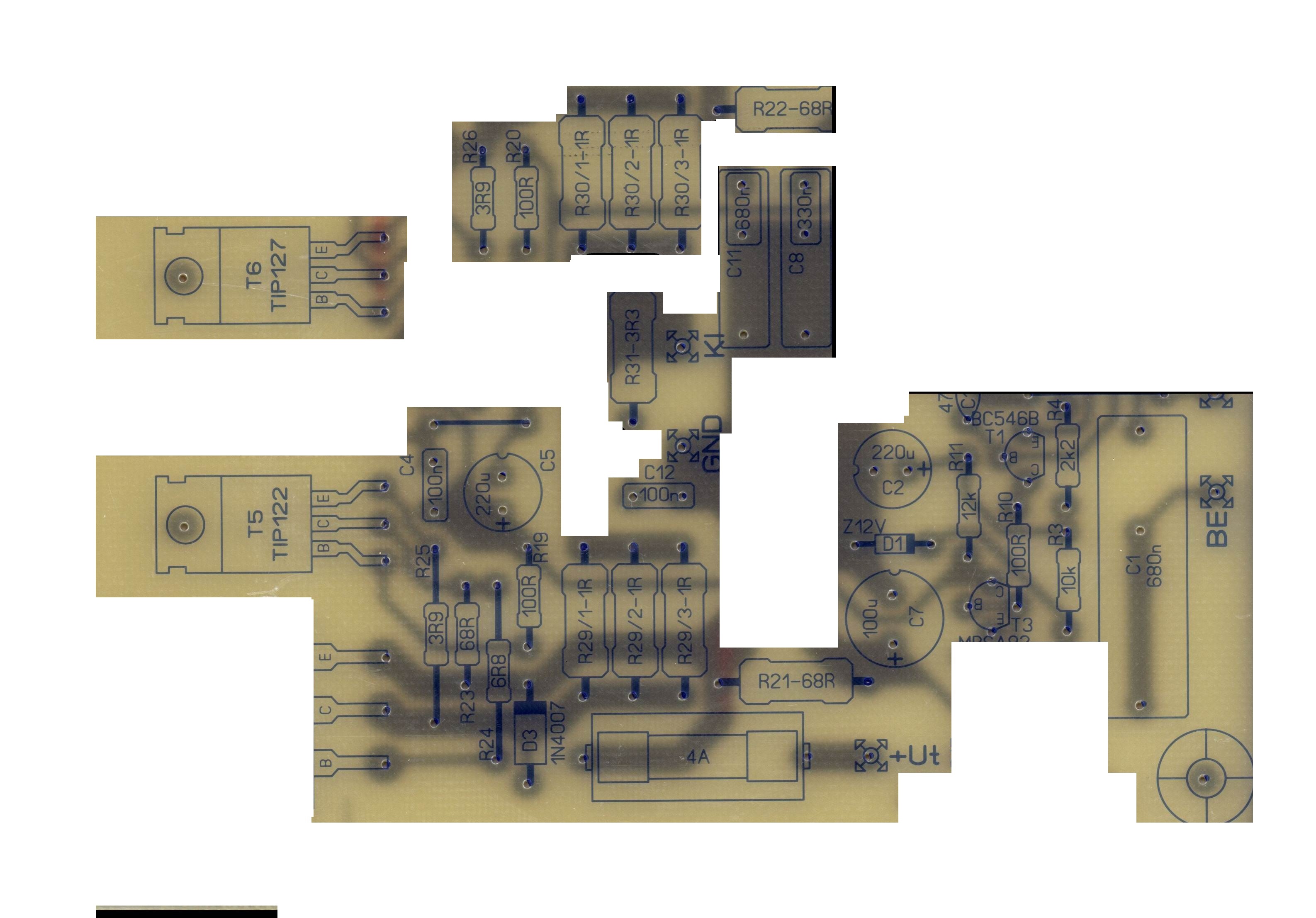 Ám nem is erről hanem a két rétegű nyák készítéséről írnék. Sokakat visszatart egy két már kész terv megépítésében a két rétegűsége a nyákoknak. Vasalós módszerrel is el lehet érni a szinte tökéletes eredményt. A terv előkészítése a fontos, a terveket egy 1.95 mm es vonallal (nyák és papír vastagság függő) választom ketté a rajzoló programban, majd összeforgatom a két oldalt hogy a vonaltól mindkét oldal egyenlő távolságra legyen és az egyik réteg ha a vonal mentén összehajtom a papírt tökéletesen visszaadja a nyák leendő rajzolatát. Ha kész az első teszt nyomtatás behajtom a papírt és megnézem jó-e. Majd kinyomom a transzfer papírra, a vonal két szélét szikével óvatosan karistolom hogy el ne vágjam. Ha kész hajtom a "perforáció" mentén. A nyák mindkét oldalát felmelegítem, forgatva, lehetőleg egyenletesen. A behajtott papírba beleteszem és próbálom a perforációt mindkét oldalt a nyák szélénél tartani. Ha kész leáztatom. Ha leázott akkor jön a meleg levegős (gázpákás) melegítés (Atilla86 tól kölcsönzött ötlet) és ha van hiba kijavítom maratás előtt lakkfilccel.