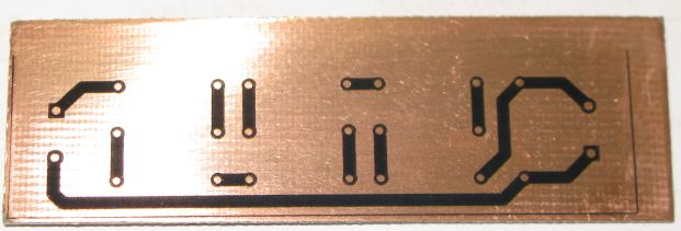 A hőfokot felvittem 160C-ra, ha annyi a max. akkor gondolom bírnia kellene arra a pár percre. A lemezt 5x küldtem át rajta. A laminálót megbontottam, kivettem belőle az egyik hátsó hengert, meg egy szép nagy vasdarabot, ami hűteni hivatott a dolgokat. Nem tudom a fólia hogy viselkedik ilyen hőfokon, én fotópapírt használtam és nagyon szép lett a rajzolat. (még a nyák szélét jelző vékony vonal is feltapadt) Innen jött az ihlet