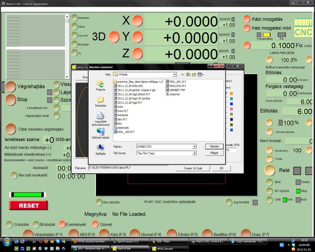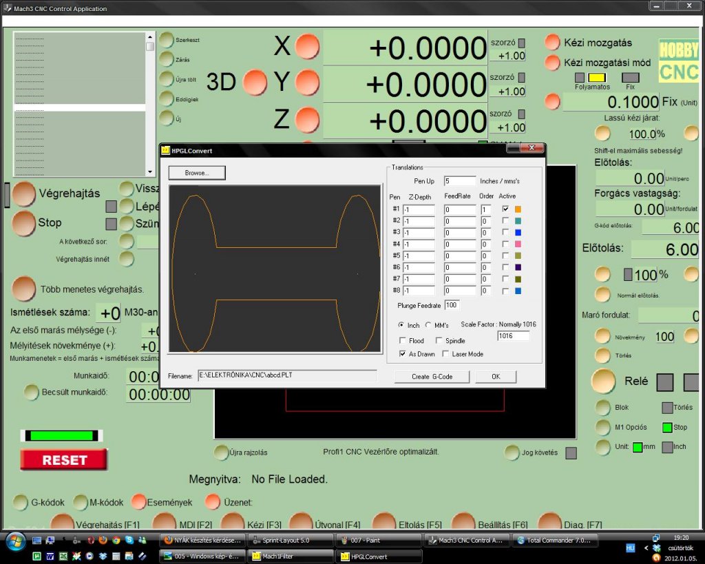 Köszönöm, így már menni fog. Én vectric programjaihoz alakítok mindent, már van hpgl dfx konverterem, még a furatokat kell valahogy megetetnem vele hogy furatként kezelje, de jó fúrófileból is. Sokkal gyorsabb cnc vel mint bármi mással. Ha technológia megvan akkor már sima ügy, úgy hiszem megtaláltam a kellő előtolást aminél az eredmény nekem elfogadható. Majd valamikor 30 fokos tűvel is teszek próbát, 15 század mélység elégnek bizonyult, valószínű majd teszek bemérőt a gépre. Köszönöm a segítséget! Próbáltam 1 mm es fúróval fúrni de jobb eredményt kaptam 1 mm es maróval így fúrásra azt fogom használni. Sorrendbe gravírozás, fúrás, kontúrmarás. Programba pedig: Sprint layout -hpgl konverzió - AB Viewer - dfx konverzió - Aspire - G kódok - Mach3 gravírozás. ETC pedig a fúrófileokra, persze máshogy is fogok próbálkozni, most azon vagyok minden program és segédprogram meglegyen ahhoz hogy a gépet teljesen ki tudjam használni. Köszönöm a módszered bemutatását ! Innen kiindulva könnyen meglett a megoldásom.