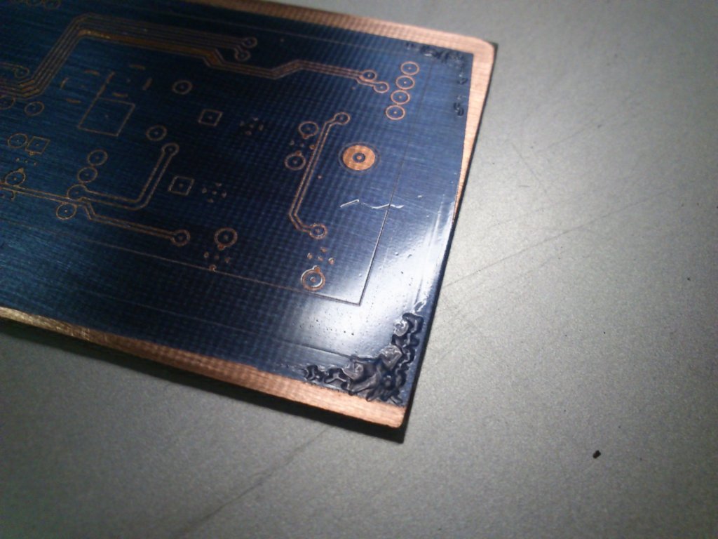 Miert van az, hogy a dryfolias panelt levilagitom, elohivom es amikor mar jo az elohivas, kiveszem a panelt az elohivo folyadekbol. Azonnal folyo csapviz alatt lemosom es ekkor felholyagosodik a folia szele a kepen lathato modon. Mi okozza ezt?