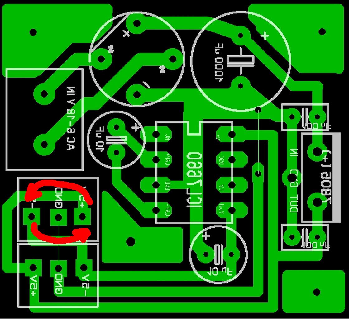 Miért van a két csatlakozó szembefordítva? Ez nagyon fura, éppen arra szoktak törekedni, hogy mindig egy irányba álljanak. Ha befordítod a belsőt, akkor a vonalvezetés is egyszerűsödik. Mintha 18V-os feliratot is látnék a diódahíd bemenetére menő másik csatlakozón. Ekkor feszültségből körülményes jól terhelhető 5V-ot létre hozni, mert túl sok amit el kell fűteni. Nálam egészen jól bevált az AC 8-9V körüli érték. A hozzászólás módosítva: Dec 4, 2014