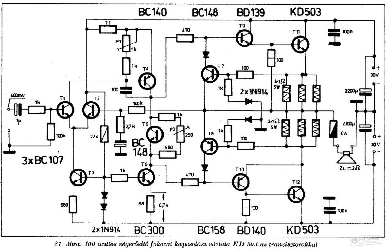 A kapcsolási rajzon már eredetileg a T4 tranzisztor BC140 típus jelölés biztos hogy nem lehet, mivel a BC300 inverze kell hogy legyen.