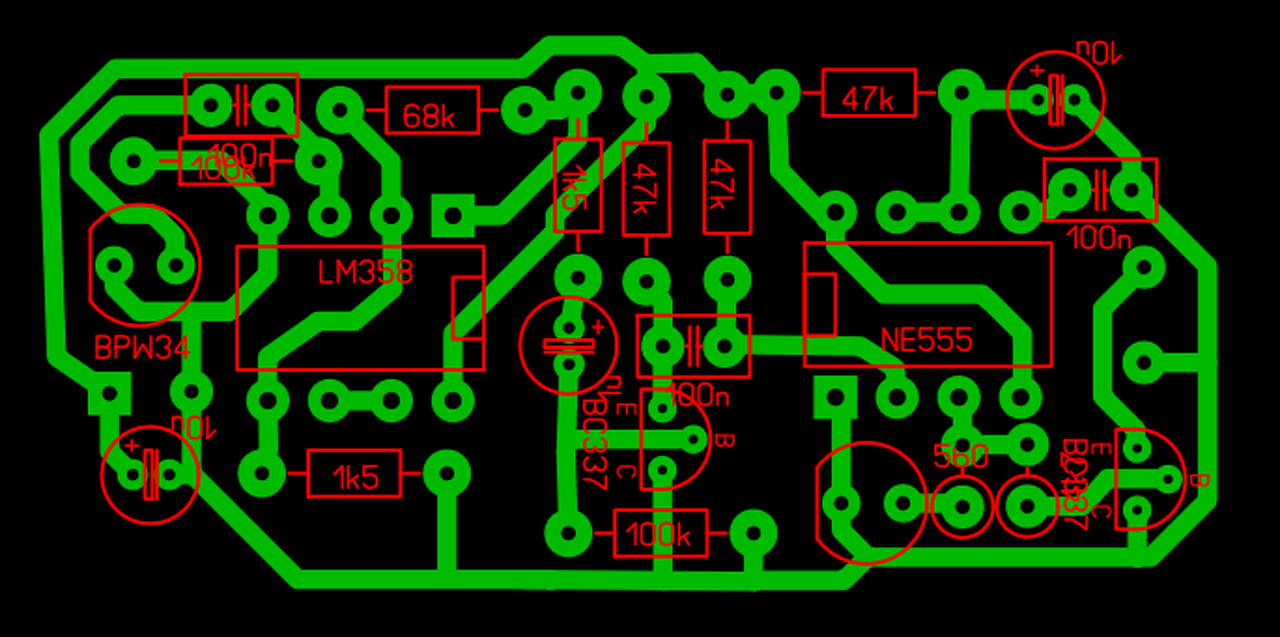 - A tranyók kollektor-emitterei fel vannak cserélve. - Ha nem muszáj, nem húzunk sávokat az IC lábai között. - A kimenti tranyónak emitter e nincs a GND-re kötve. - Az IC lábait érdemes megnagyobbítani, stabilabb lesz tőle a nyák. - A tápfesz vonalakat is érdemes a lehető leg vastagabbra tervezni. - A tápra mindig érdemes egy szűrőkondit tenni, akkor is ha ellem a táp. - Az Ic (OPA) nem használt erősítőit érdemes "hatástalanítani". Az invertáló lábat a kimenetére kötni és a neminvertálót valahova bekötni. (Itt pld. a másik bemenetére kötöttem, de csak a nyák célszerűsége szempontjából. De ez sem tilos.) - Amikor mindenki-mindenkivel már helyesen össze van kötve, célszerű átnézni, mit lenne célszerű áthelyezni. Hol lehetne a kerülgetéseket lerövidíteni stb..