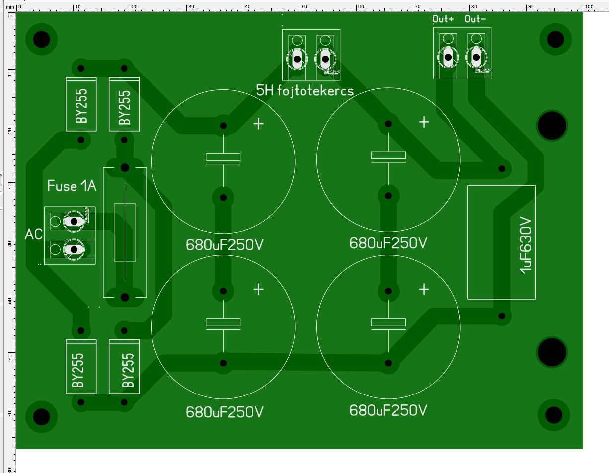 Szeretnék egy hozzáértő szakit, aki átnézné a nyák-tervet, hogy mennyire elfogadható, vagy kell, érdemes valamit változtatni. Mondjuk a kapcsoláshoz annyit változtattam, a biztosítékot a szekunder oldalra tettem. Lenne még egy kérdésem, miket kell bejelölni, hogy eltudjam készíttetni a nyáklapot? A JLCPCB-nél szeretném elkészíttetni.