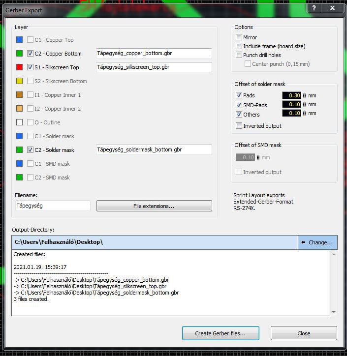 File -> Export -> Gerber export - Kijelölés -> Create gerber files
