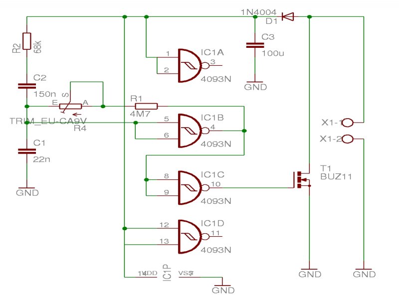 - A 100µF-os kondi polaritása fordítva van. - Az X1-1 és X1-2 pontoknak nincs kivezetése a nyákon. A két X1-es pontot egészen közel kell tenni a Fet-hez, és vastag vezetősávval a Fetre kötni, mert ott folyik az "Amper". - Kicsit rendet kellene tenni az alkatrészek között, ne "össze-vissza" álljanak. Általánosságban is olyan vastag vezetősávokat használj, amilyent csak megenged az áramkör, mert annál biztonságosabban fognak ülni az alkatrészek a panelben. üdv! proli007