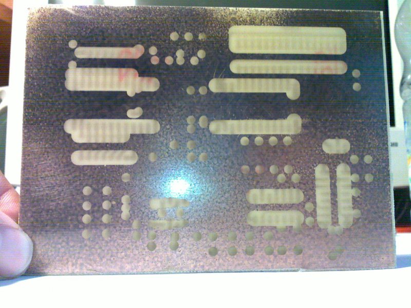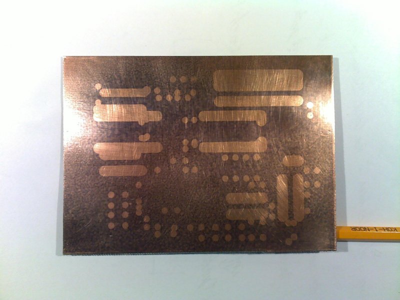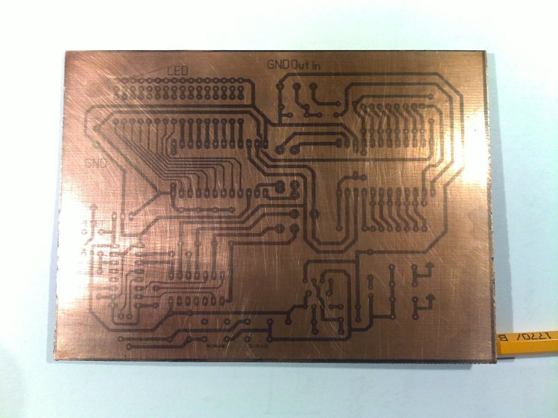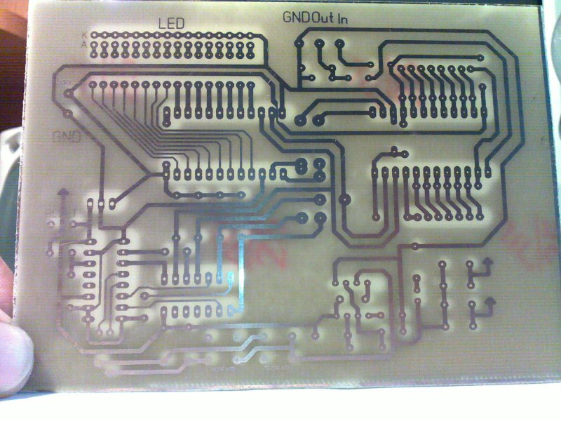 Épp most marattam ki neki a nyákot, de ez csak amolyan próba lesz, ha sikerül, akkor odaadom egyik haveromnak, mert neki kell egy monó, ha nem működik, akkor megkell keresni a hibát. Majd amire nekem szükségem lesz az ugyanez csak sztereóban, meg több minden kerül fel a nyákra, más kapcsolások is. VBisszakanyarodva... Kimartam a nyákot, de nem lett a legjobb... Hogy leárnyákoljam az áramkört, ezért az alkatrész felőli oldalon ahol lehetett meghagytam a vezetősávot, csak köpködött a p20 ezért nem lett egyenletes. Viszont a nyák felőli oldal az nagyon jó lett, egy helyen van zárlat, ahol az IC lábai között hoztam el a vezetősávot, de már a nyomtatáson is lehetett látni, hogy ott összeér... Pedig jó nyomtatóm van, be is állítottam rendesen. Legközelebb majd megpróbálom iskolába kinyomtatni lézeres nyomtatóval az olyan rajzokat ahol az IC lábai között jön el egy vezetősáv. Ja igen, kicsit elcsúszott a felső és az alsó réteg egymáshoz képest. Ez volt az első, hogy így a nyák mindkét oldalát felhasználtam, legközelebb ügyesebb leszek.Beültetni csak jövőhéten fogom.