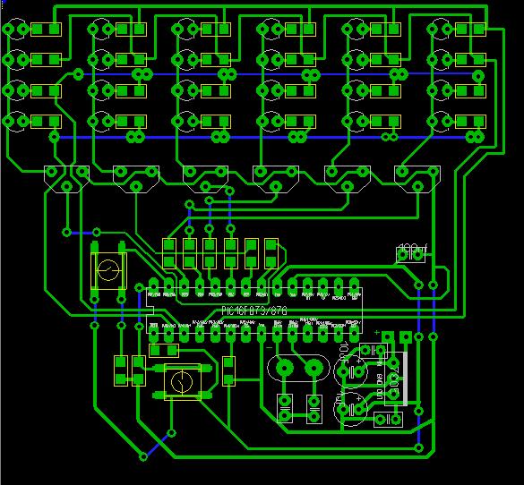Őszintén szólva nem is kerestem. Ismerni kéne hozzá a kapcsolási rajzot, mert a tranzisztorok bekötése típusfüggő, és nem tudom ezek milyen tranyók. Ráadásul az SMD alkatrészekről sem derül ki, hogy mi micsoda. A többi elvileg jó lenne, de a PIC táplábaihoz minél közelebb tegyél 100nF kerámiakondikat, ez kötelező! Sok ismeretlen eredetű hibától kíméled meg magad. A másik pedig a tápkérdés. Elég sok ledet használsz, ez bizony megrángatja a tápot rendesen. A stab bemenetéhez 1000µF kondi sem túlzás, a kimenetén lehet hogy elég 10uF, de lehet hogy a hirtelen változó terhelések miatt 100µF jobb lenne. A ledek tápvezetékei is nagyon soványak, gondolj bele, nano vagy milisec alatt következnek be az állapot és terhelés változások!