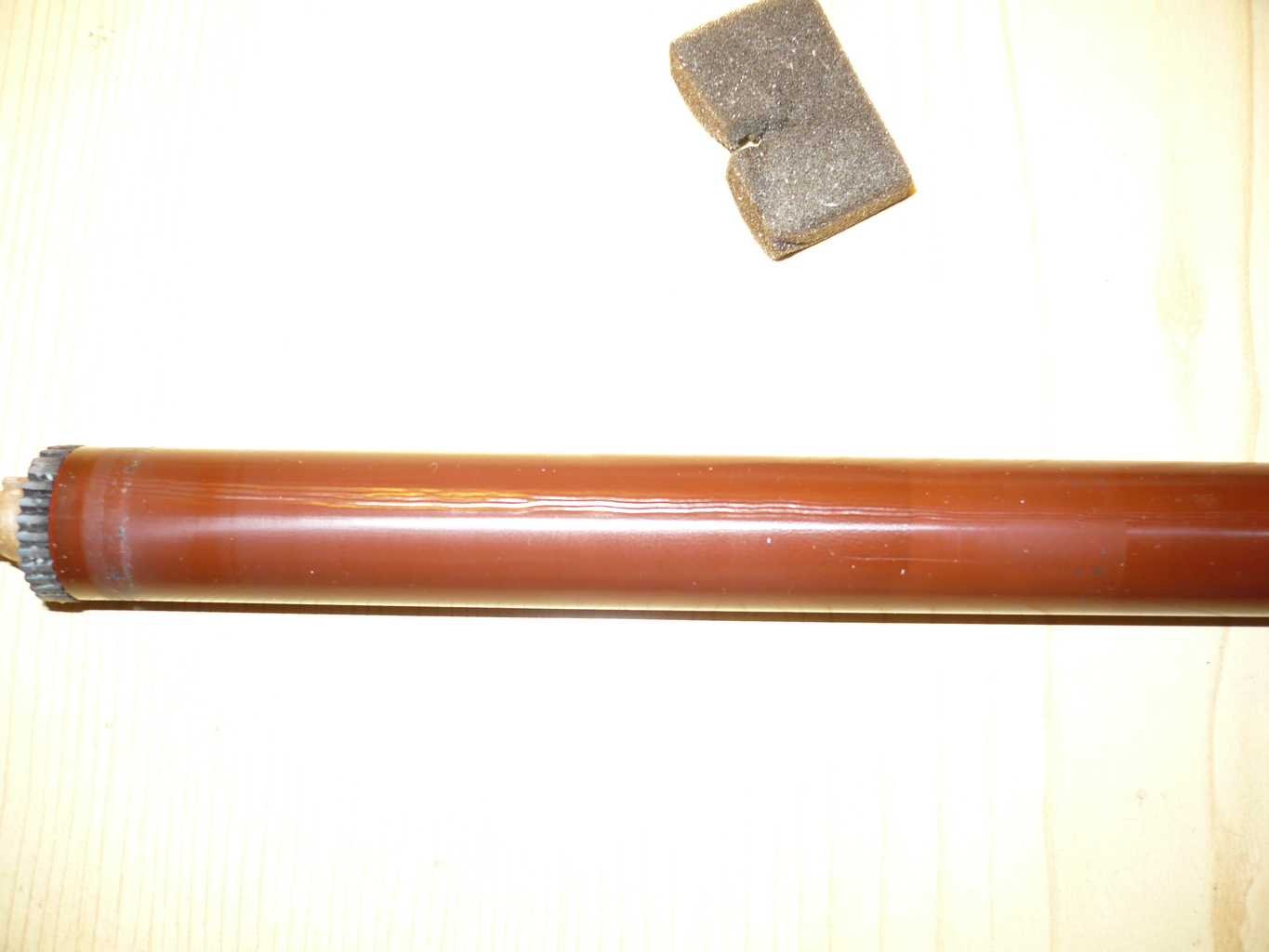 HP LJ1100 nyomtatómat szétszedtem, hogy kitakarítsam mert csíkosan nyomtatott és piszkolta a papírt. A kérdésem, hogy a képek alapján a fuser fólia és az alsó nyomóhenger (gumi) cserélendő e ? A fólián mákszemnyi lyuk van, a gumihengeren pedig egy vízszintes nyomódás.