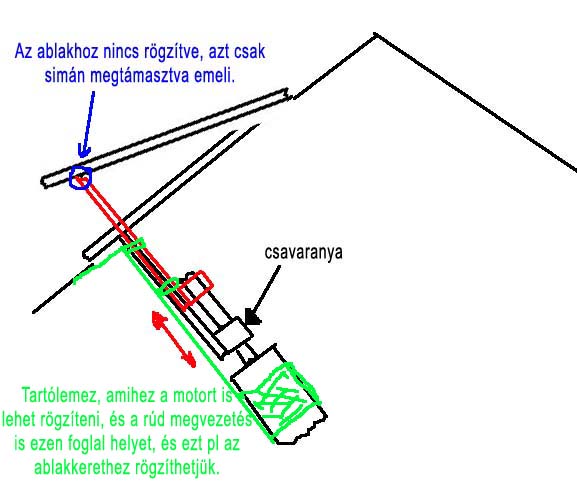 Jó lesz ez is csak az anya-rúd és az ablak-rúd találkozási pontokat csuklónak kell kiképezni. Persze ezeknél a megoldásoknál az ablak szögsebessége változó lesz,de szerintem ez nem zavaró.