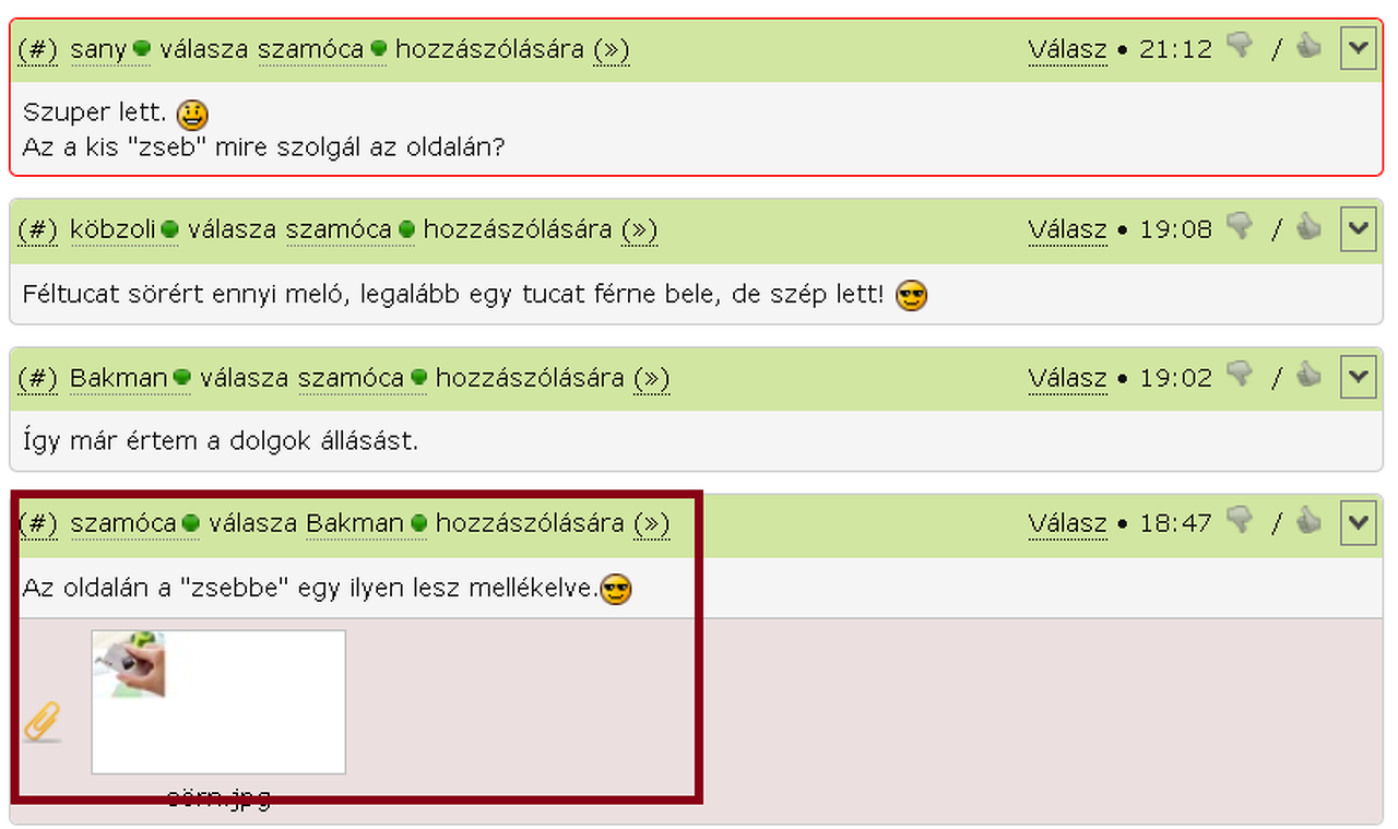 Az a kis "zseb" mire szolgál az oldalán? ![]() Pedig olvastam is a hozzászólást. Hiába aludni kellene már. |