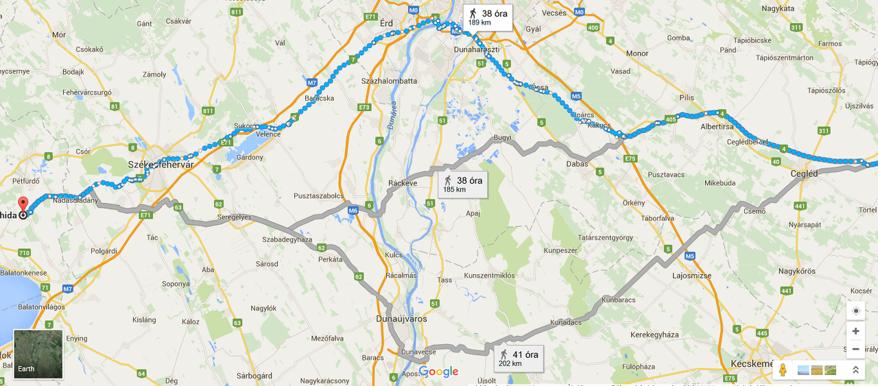 Térképen próbáld megtervezni, mert ezek a NET-es tervezők mindenáron Budapesten keresztül akarnak vinni, pedig az elég nagy kerülő.