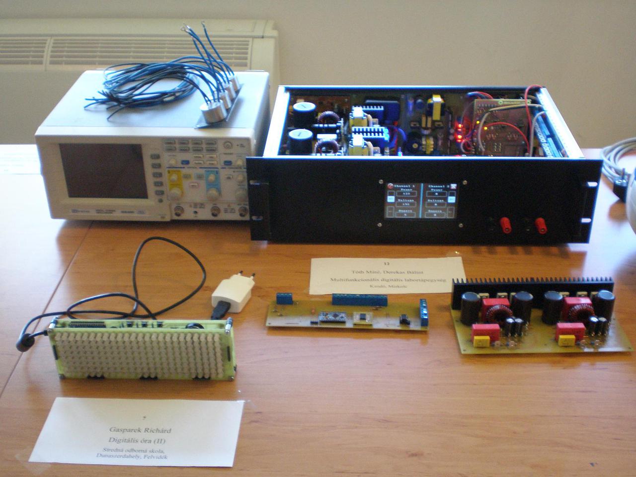 Sok érdekes munkát láttam, többekkel megismerkedtem, tapasztalatcserével, ötleteléssel, beszélgetéssel telt el a szombati nap, amikor is az előre elkészített pályamunkákat kellett a zsűrinek bemutatni. A pénteki nap építéssel, méréssel telt, egy DC-DC konvertert kellett építeni, majd különféle méréseket végezni rajta.