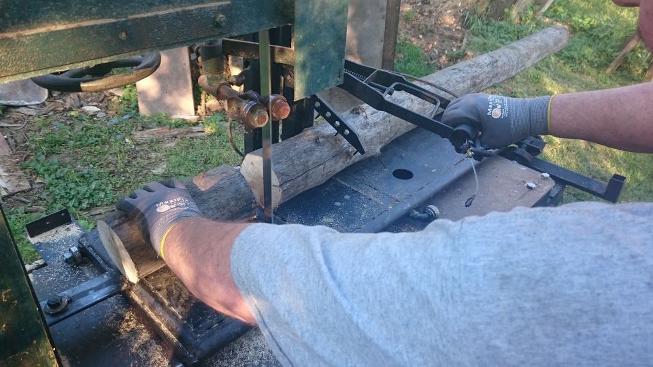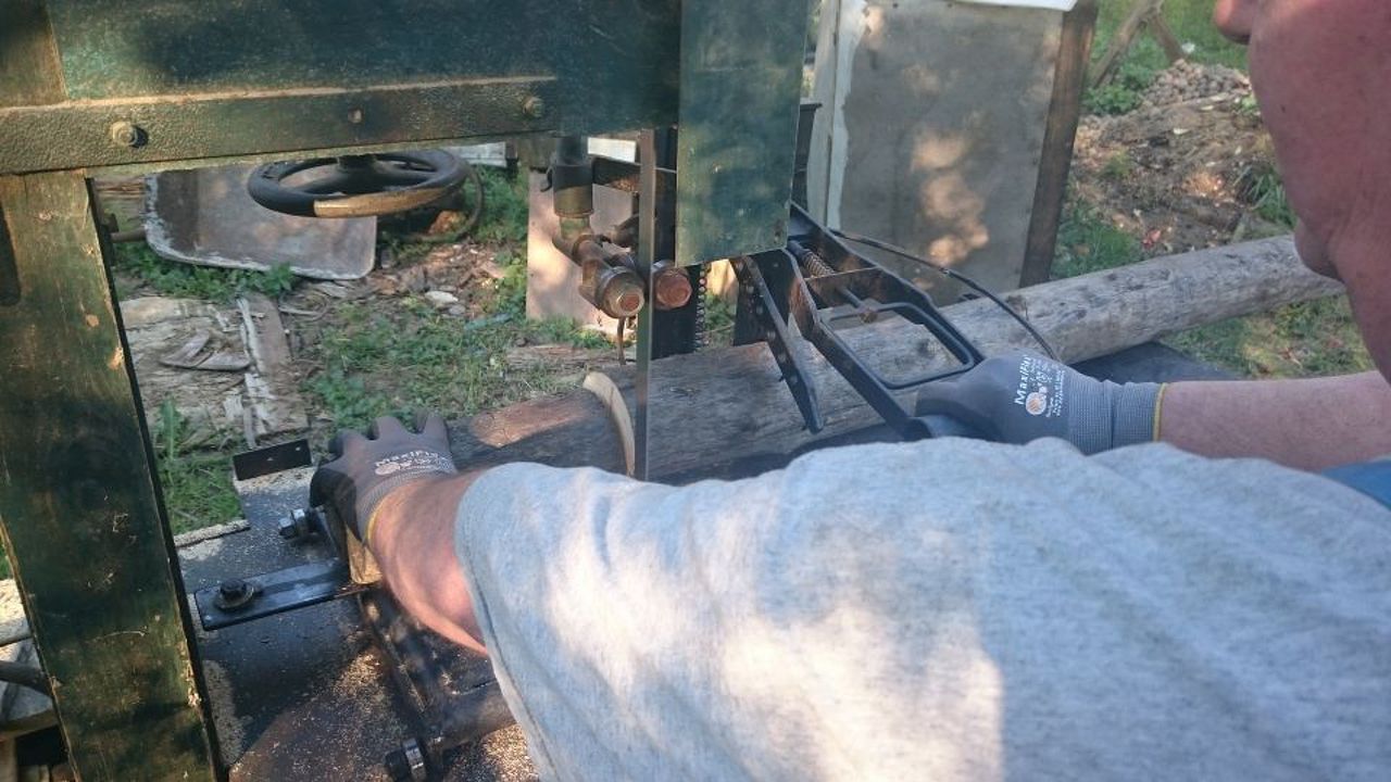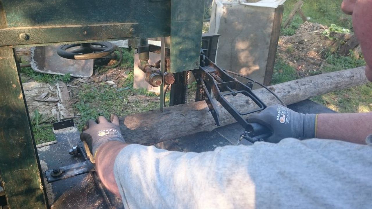 Nem rossz jószág, bár az nem teljesen világos, ha az egyik kezeddel a kart úzod le, akkor csak a másikkal tudod fogni a vágandó rönköt? Ez így nem a legszerencsésebb megoldás, nem?