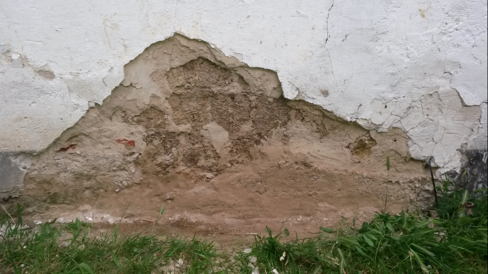 Nem ez a lényeg hanem a vályog és az alap nem egymáson hanem egymás mellett van. És a vakolat is porladt.