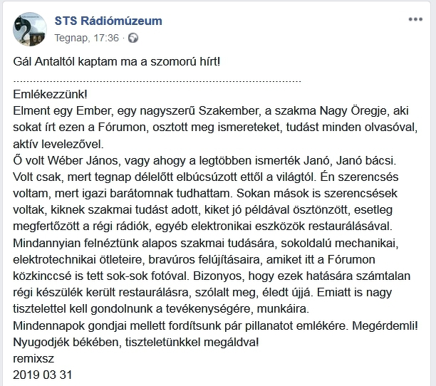 Ezen a szomorú napon találtam egy bejegyzést a Facebook fiókomban.