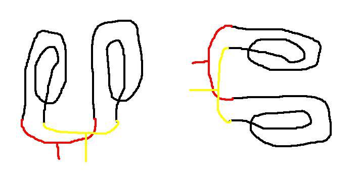 Sziasztok. Medencefűtésről lenne szó, de végülis fizika kérdése. Van két feltekercs csövem spirálba, ami eddig egy srég tetőn volt, egymás mellé téve, párhuzamosan kötve, jól működött, de most az elhelyezése így már nem megoldható. Muszáj volt úgy elhelyezni egy másik srég tetőn, ahogy a második ábrán van, tehát egmás alá-felé. Amíg egymás mellett volt, egyenlő nyomással ment a víz méndkét spirálba, de most gondolom ez az összekötés,hogy párhuzamosan van a kettő nem lesz jó, mert a felsőbe nagyobb nyomással kellene keringetni, az alsóba meg kisebb nyomással. Tehát a kisebb ellenállású spirálon forgatná a vizet, a nagyobb felsőbe meg csak állna a víz. Így van? Vagy teljesen roszul látom a fizikai részét, és semmi baja nem lesz így se?