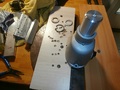 Ne gondoljad azt, hogy arra a meglévő csavarra egyetemes esztergán olyan egyszerű menetet vágni. Tökig rávágni egy menetet, azt vagy menetmetszővel tudsz, vagy CNC-vel. Hagyományos eszterga padon nem olyan egyszerű művészet olyan menetet vágni, mint ami a képen látható. Az én gépemen van automatikus fék és menetkés-kiemelő. De tövig akkor sem merném rátolni a menetet, mert elég egy apró hiba, és ugrott a munkadarab és a kés is. Ugrik a kés, a munkadarab és a munkaidő is. Nem beszélve arról, hogy meglévő menetre kell rávágni a menetet, ami megint csak nehezít. Bár annak, aki érti nem nagyon, de mégis csak foglalkozni kell vele. Én, a sekélyes tudásommal inkább új munkadarabot készítenék, mert az hamarabb menne. De nem lenne összeegyeztethető a metsző ára egy esztergályos vállalkozó óradíjával.