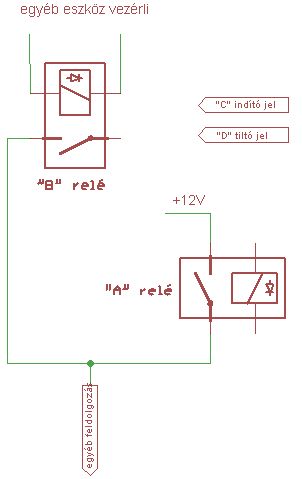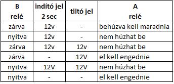 Az "A" semmilyen körülmények között nem húzhat be ha a "tiltó jel = 12V" de ha már behúzott állapotban van akkor a "tiltó jelre" el kell engednie. A tiltó jelre mindenképpen el kell engednie vagy be sem szabad húznia. Ez az egyik legfontosabb.