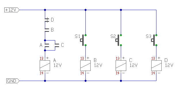 Ok...értem. Szerintem ez így jó lesz de még a "B" relét is bele kellene tenni az áramkörbe.