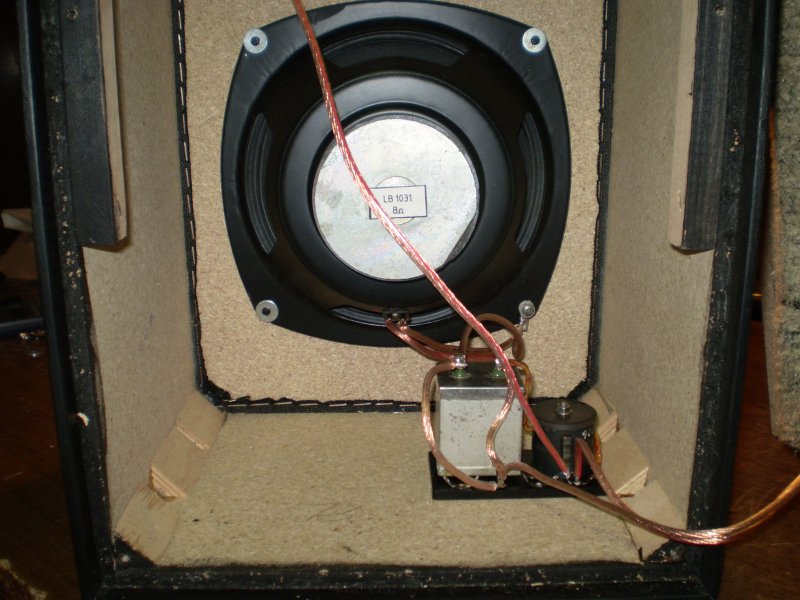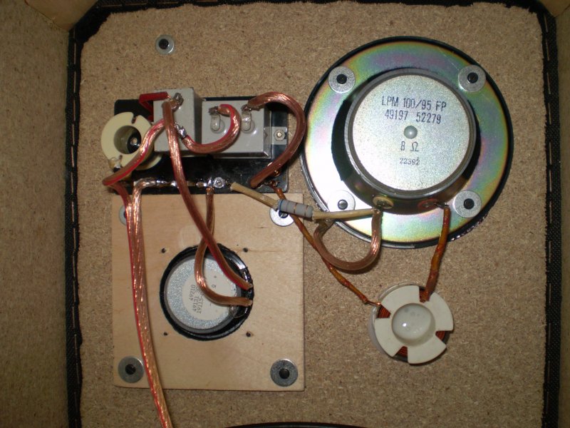 Azért csak 1u a kondi, mert a mélyközép teljes sávban szólt eredetileg, a középhsz pedig nem túl érzékeny, és elektromosan is rossz, ezért rezonanciafrekin van egy szép nagy kiemelése. Ezt hivatott minél inkább levágni az 1u-s kondi... gyakorlatilag... a középhsz ebben az esetben szinte fölösleges a rendszerben, mert az LB1031 középtartománya is használhatóbb tőle. Két útban lenne értelme használni.