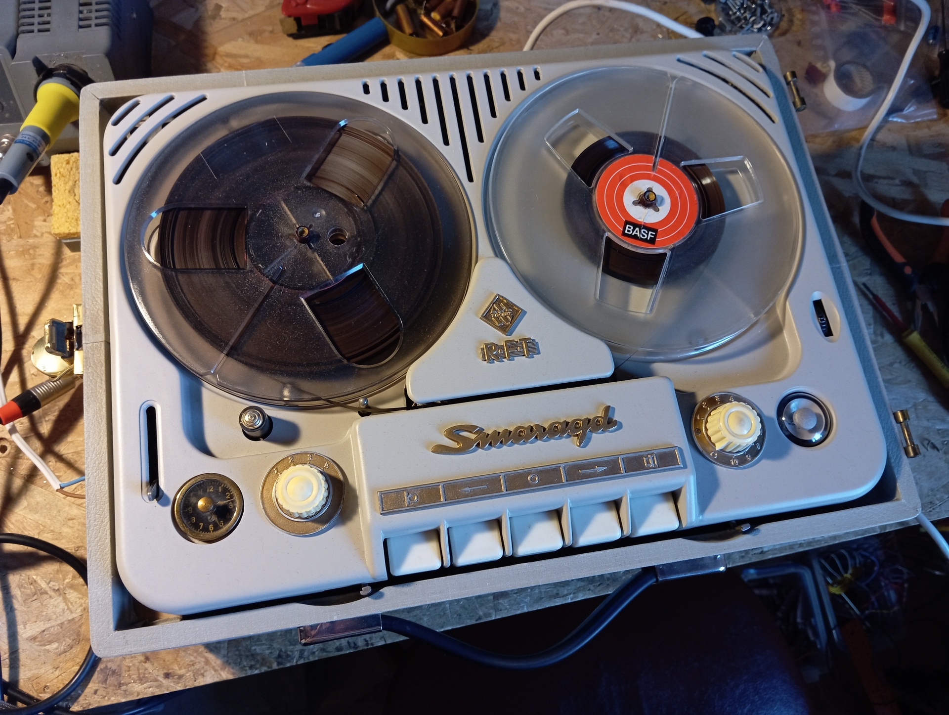 Minden kondit kicseréltem benne, kapott új szíjat, kitisztítottam a mechanikát. Érdekessége ennek a magnónak az, hogy csak három cső van benne egy ECC83, egy ECL82 és az EM11-es varázsszem, ami nagy örömömre szépen működik. Felvételkor a magnó az előmágnesezést a végfokcsővel oldja meg, így nem lehet hallani semmit a bemenő jelből, csak arra hagyatkozhatunk amit a vu méter mutat. Itt egy kis videó a hangjáról, egy BRG Mambo teszthangszoróba van kötve és azt kell mondanom, hogy ritka szépen szól. Mondjuk a szalag is szinte új LPR90 Bővebben: Link
