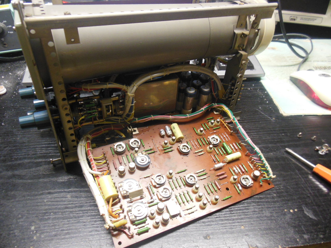 Nem tudom, mi a szándékod vele, olyan nagyon átalakítani sem érdemes, a hosszú utánvilágításúernyője miatt. Viszont így lehet használni egyszeri lefutású jelek vizsgálatára, a kis sávszélessége miatt azt sem nagy spektrumban. (3 kHz) Az érzékenysége viszont nagy, ehhez elő osztót kéne tenni.