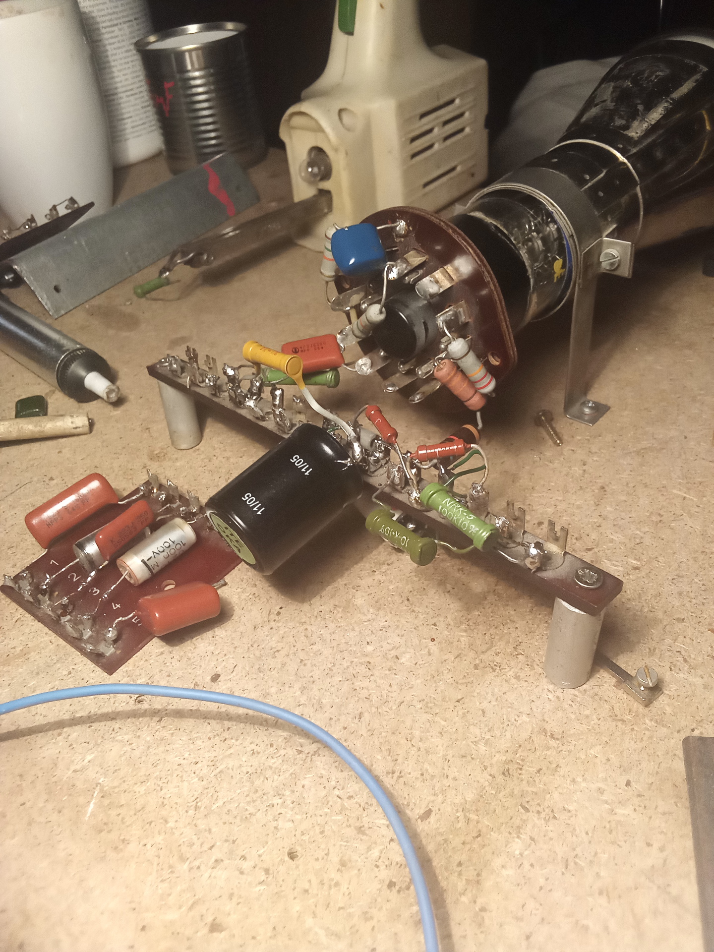 Most hogy ilyen korán sötétedik az ember gyereke rászánja magát a régóta halogatott dolgokra. Én egy 69-ben közölt szkópot kezdtem el építeni de eszembe jutott, hogy dupla trióda esetén a két fél nem feltétlenül egyforma. A katód rész mégis közösítve van. Egyelőre deszka modell, utána majd átteszem. Azt akartam mondani, hogy nem lesz aszimmetrikus a rendszer a fenti ok miatt?
