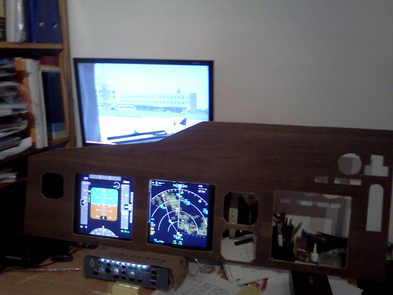 Üdv! Én is egy B737-es fülkét építek, még nagyon az elején járok, tegnap vágtam ki a műszerfalat. 3db 17" monitorral fog működni.