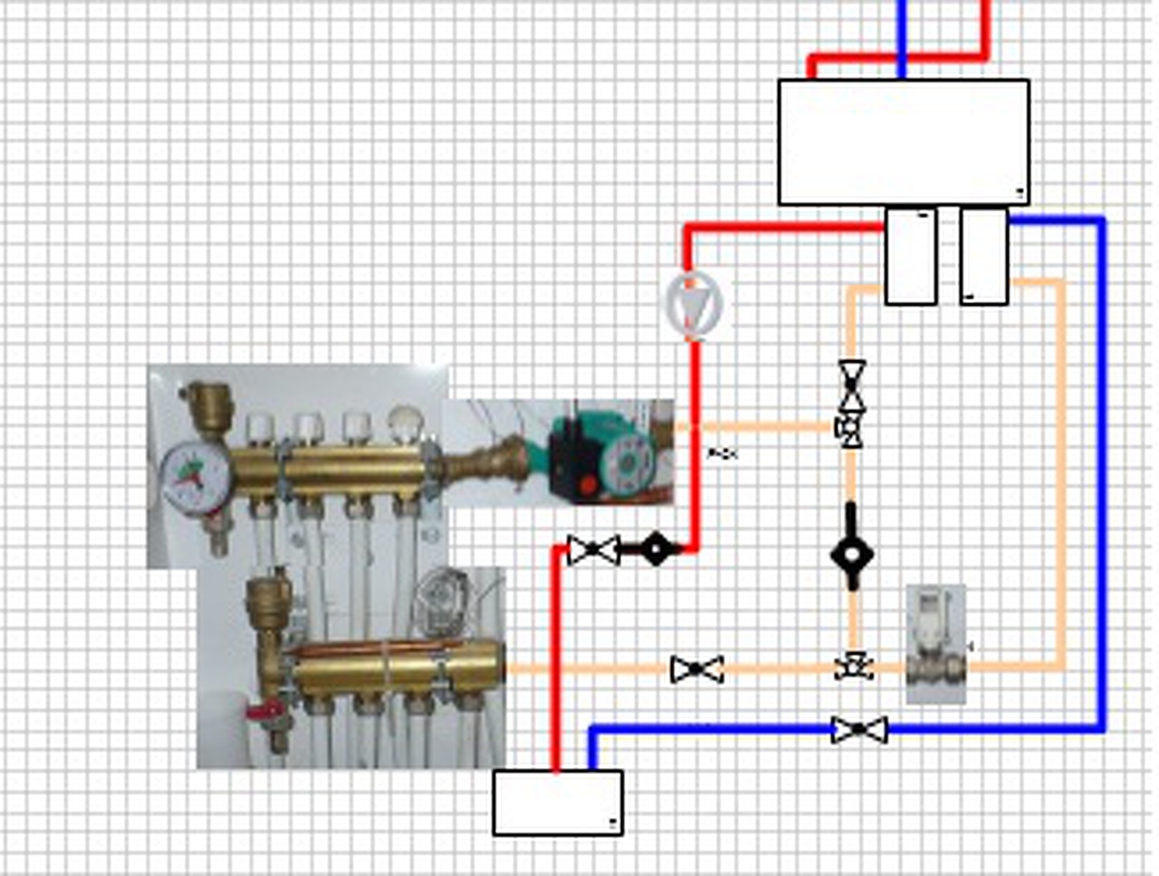 szia itt egy rajz hogy mit szeretnék a házba rakni. Ebben szeretnék segítséget kérni hogy mit hova tennétek pl, mennyi keringető szivattyú, mennyi 3 járatú motoros keverőszelep vagy több járatú, elektromos termosztát...stb egy olyan rendszert szeretnék ami teljesen automatikusan dolgozzon é nekem csak a hőfokot állítsam be és ő úgy kapcsolja a megfelelő köröket és azon belől a szivattyút és a szelepet. Szívesen fogadok egy komolyabb rajzot vagy egy kész tervet!