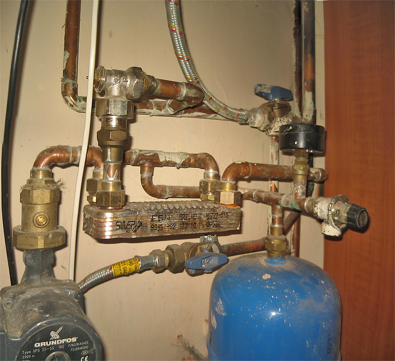 Hát hőcserélőd az van, az a lapos, rovátkolt tetejű az, az a feladata, hogy a kazán előremenő vizéből alacsonyabb hőmérsékletű vizet csináljon a padlófűtéshez. Amit bejelöltél, az egy motoros szelep (csap). Nem igazi motor van hozzá, hanem valami nem is tudom mi, szóval lassan zárja el a csapot. Ami nincs rajta, az a lényege, nem tudom pontosan mi a neve, de az a rész a "motor". Ez egy fekete téglatest alakú doboz, oldalán van egy kapcsolószerűség, amivel mechanikusan is be lehet kapcsolni, különben pedig a hálózati fesz. működteti. Épületgépészeti boltban árulják, rajzold le, hogy milyen szelephez kell, tehát, a szelepből csak egy kis pucuka áll ki. Azt nyomja be a "motor".Tudni fogják, hogy mi az... Erről a kapcsolószerűségről lehet látni azt is, hogy a szelep nyitott, vagy zárt. Valószínű, az volt a szaki elképzelése, hogy ez a szelep lezár, ha elég meleg van a helyiségben. És gondolom, kikapcsolja a Grundfoss szivattyút is. Talán a szobatermosztát vezérli őket?